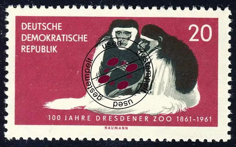 826 Dresdeer Zoo singes (Guerezas) 20 Pf O tamponné