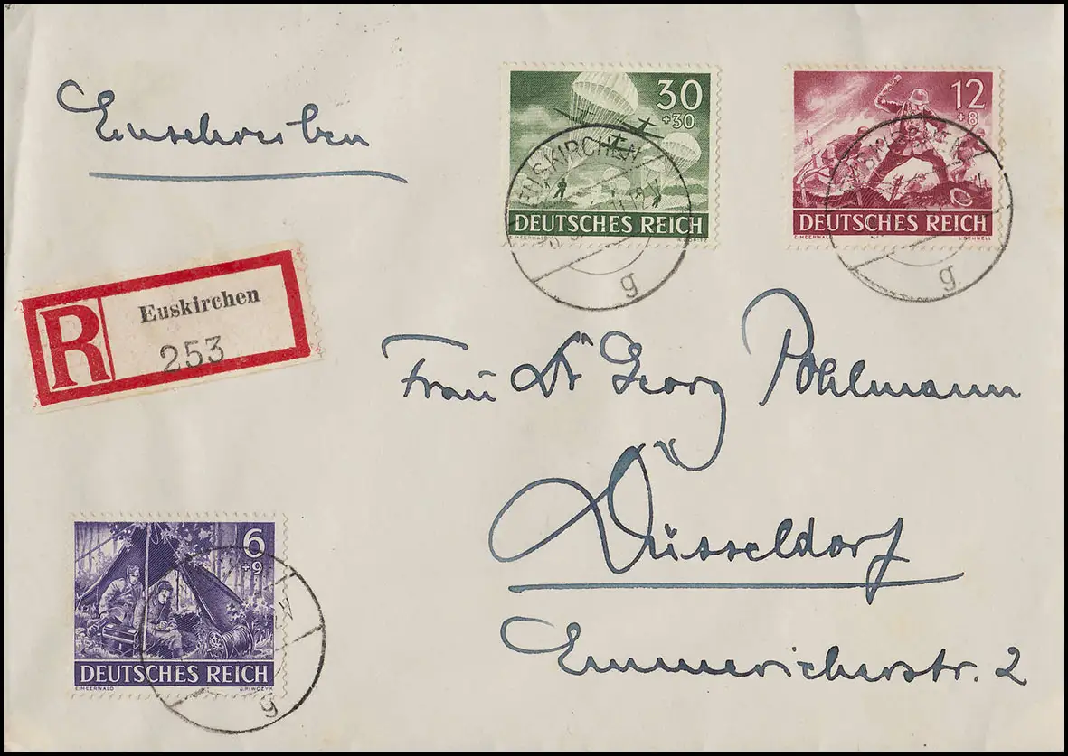 834+836+840 Wehrmacht 6+12+30 Pf sur lettre R EUSKIRCHEN 8.5.43 à Düsseldorf
