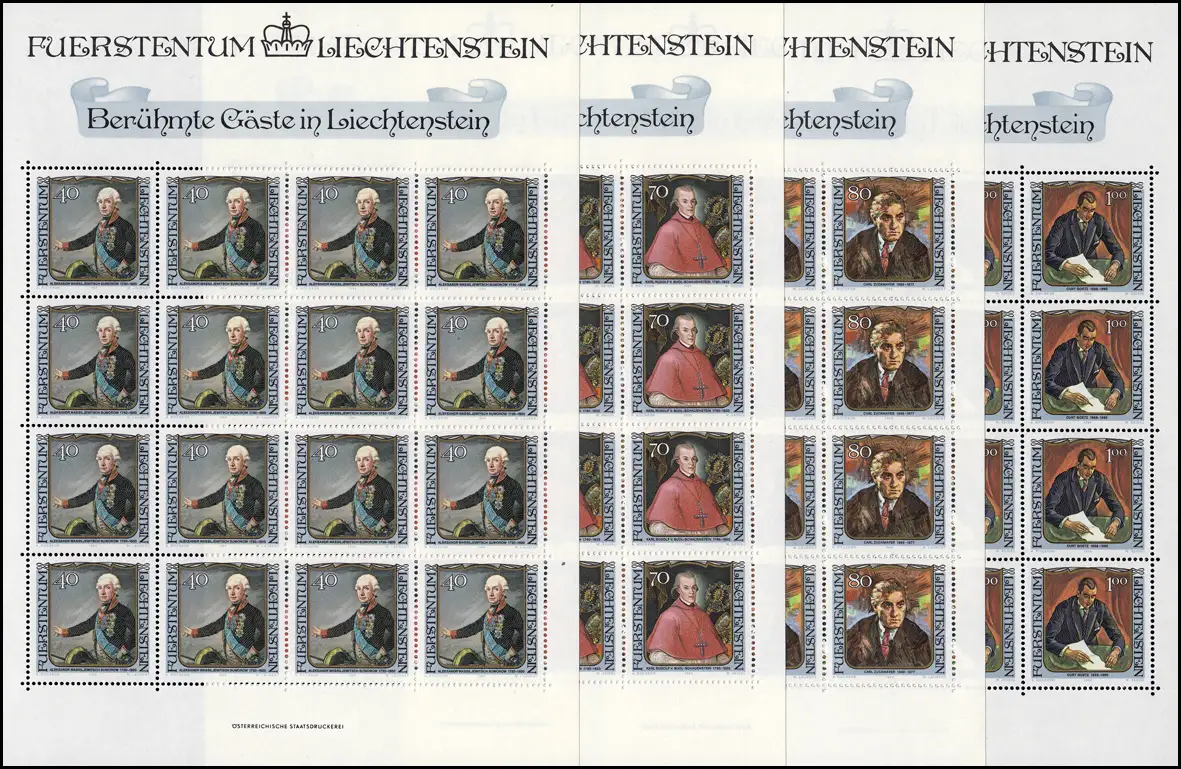839-842 peintures de célèbres invités au Liechtenstein 1984, jeu de petites feuilles **