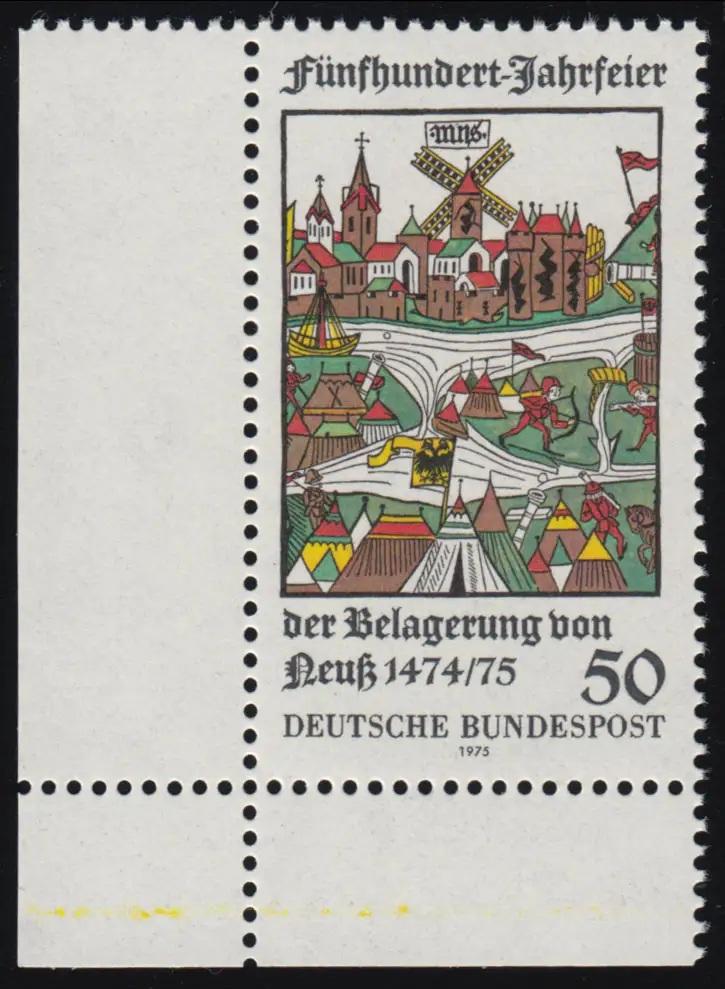 843 Ville de Neuss en bas à gauche: couleur jaune sur le bord inférieur, **