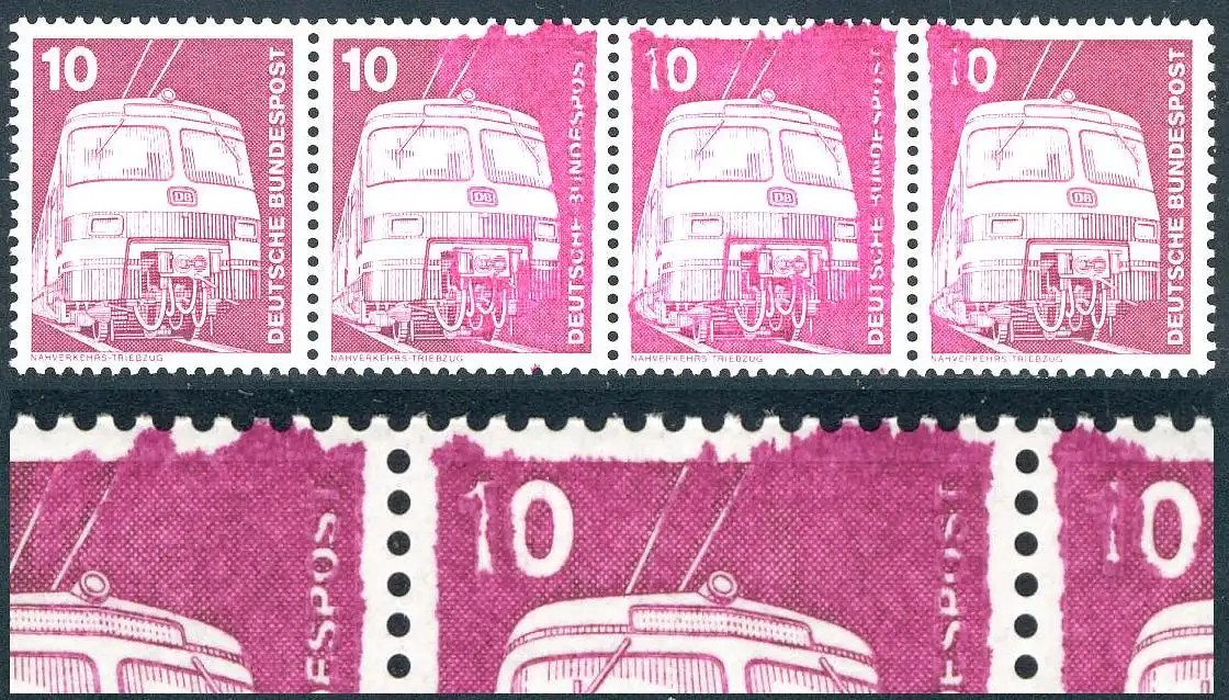 847 IuT 10 Pf: - bande à quatre bandes avec un lubrification de couleur forte, **