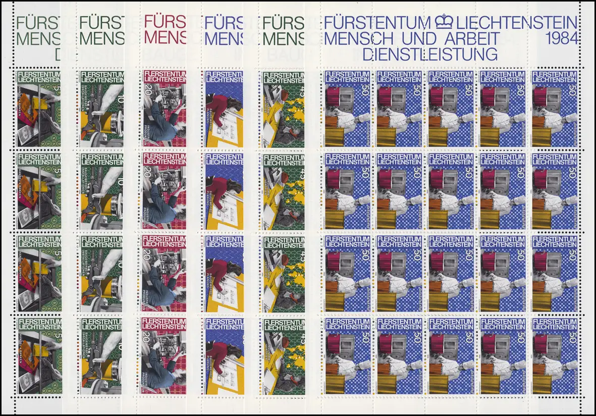 849-860 homme et travail 1984, 12 valeurs, petit jeu de feuilles **