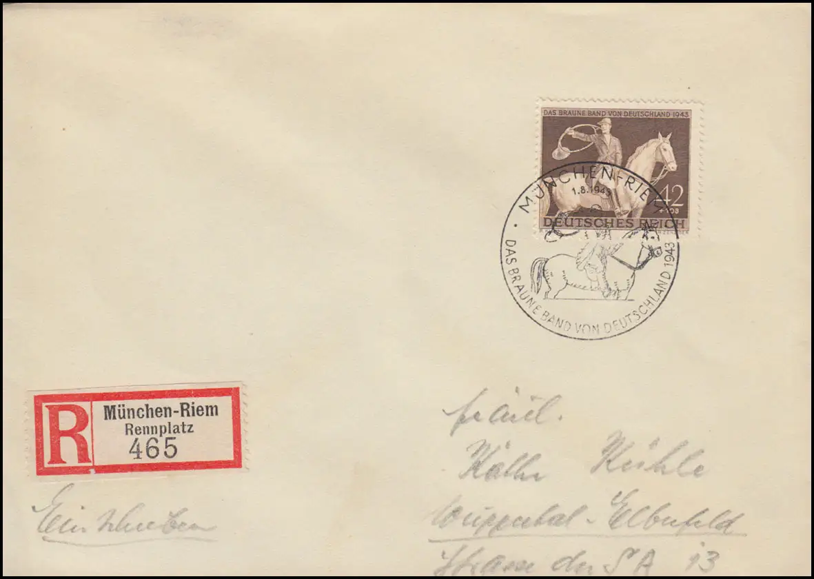 854 Le Band Brun Chasselier 1943 R-Lettre SSt MÜNCHEN-RIEM 1.8.43 n. Wuppertal