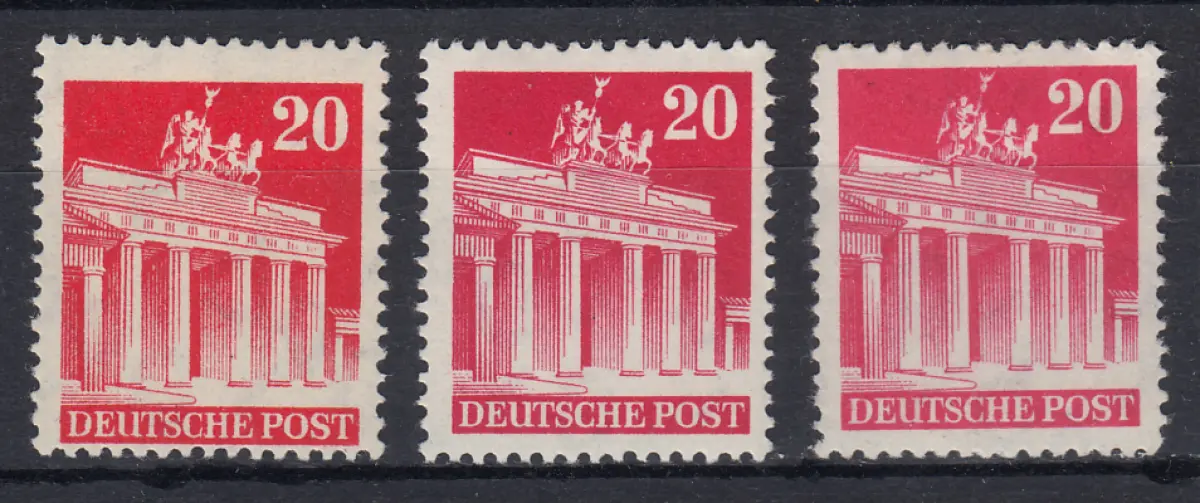 85WA eg Bauten 20 Pf. Set mit drei unterschiedlichen Farbtönungen, postfrisch **