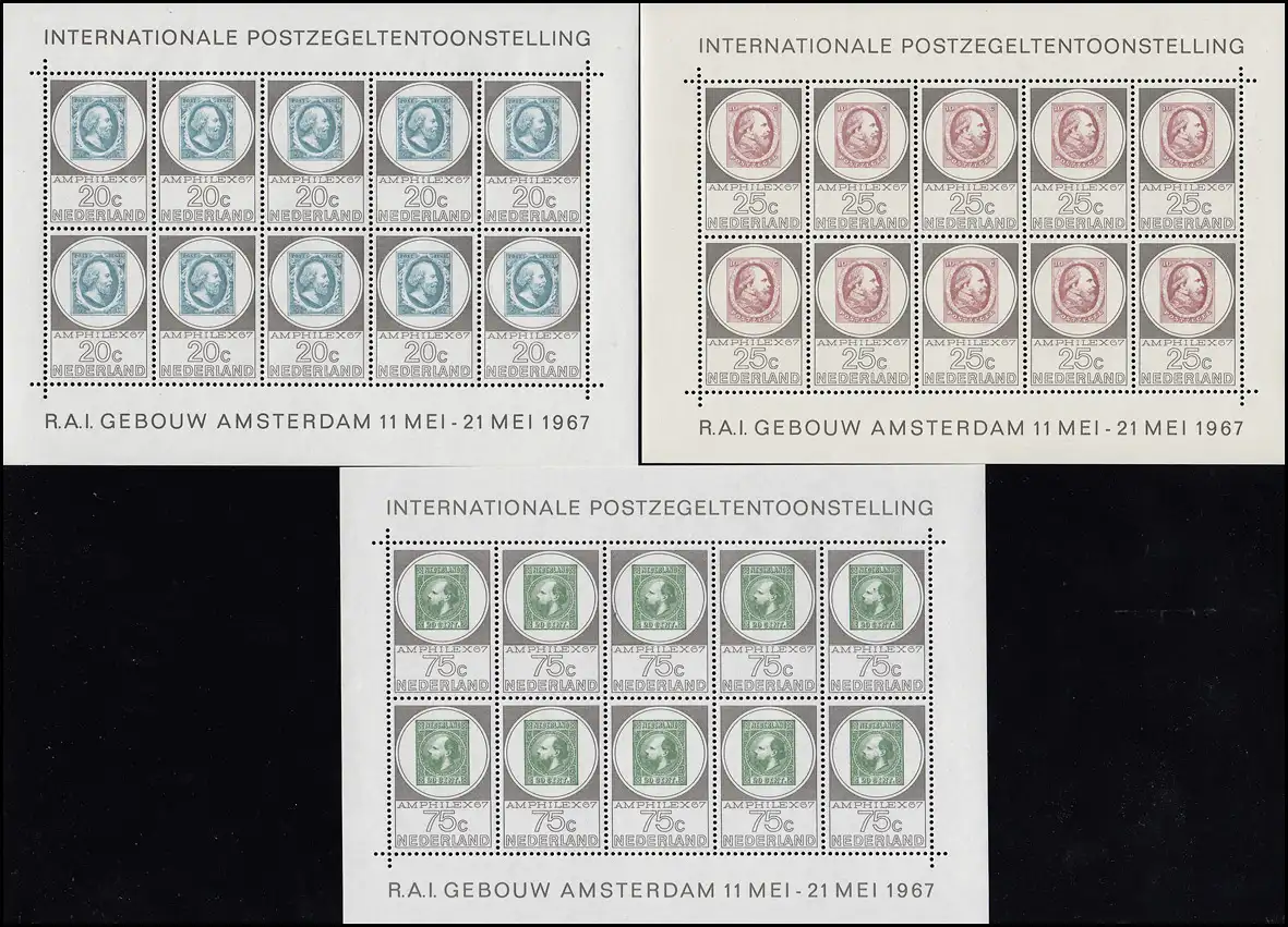 880-882 Exposition des timbres AMPHILEX 1967, série de petites feuilles **