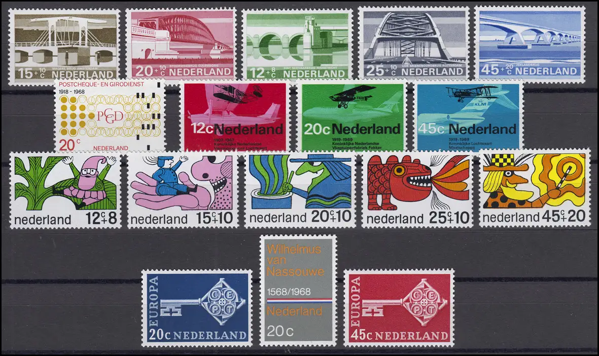 893-909 Pays-Bas 1968 complet avec bloc 7, frais de port