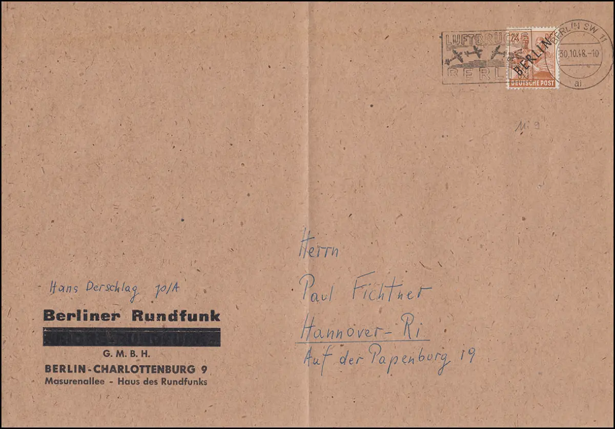Absender Berliner Rundfunk, Haus des Rundfunks, Umschlag gefaltet