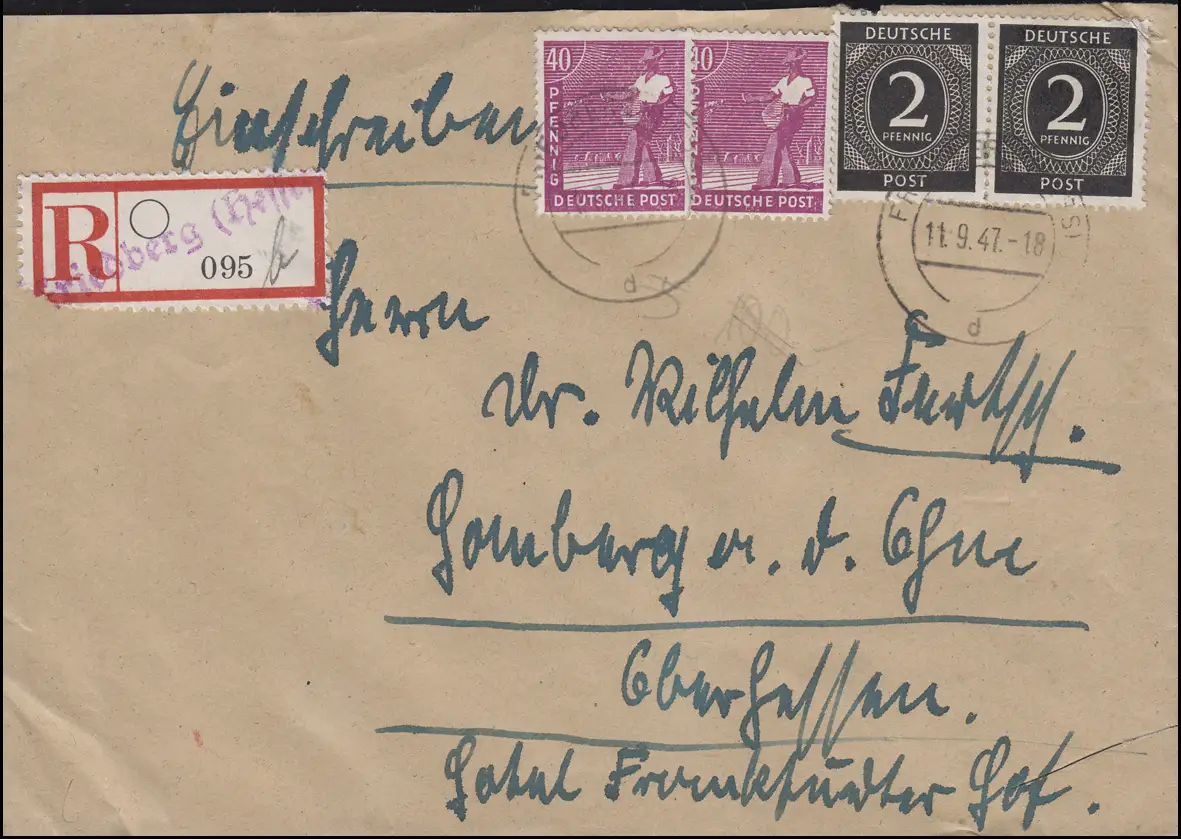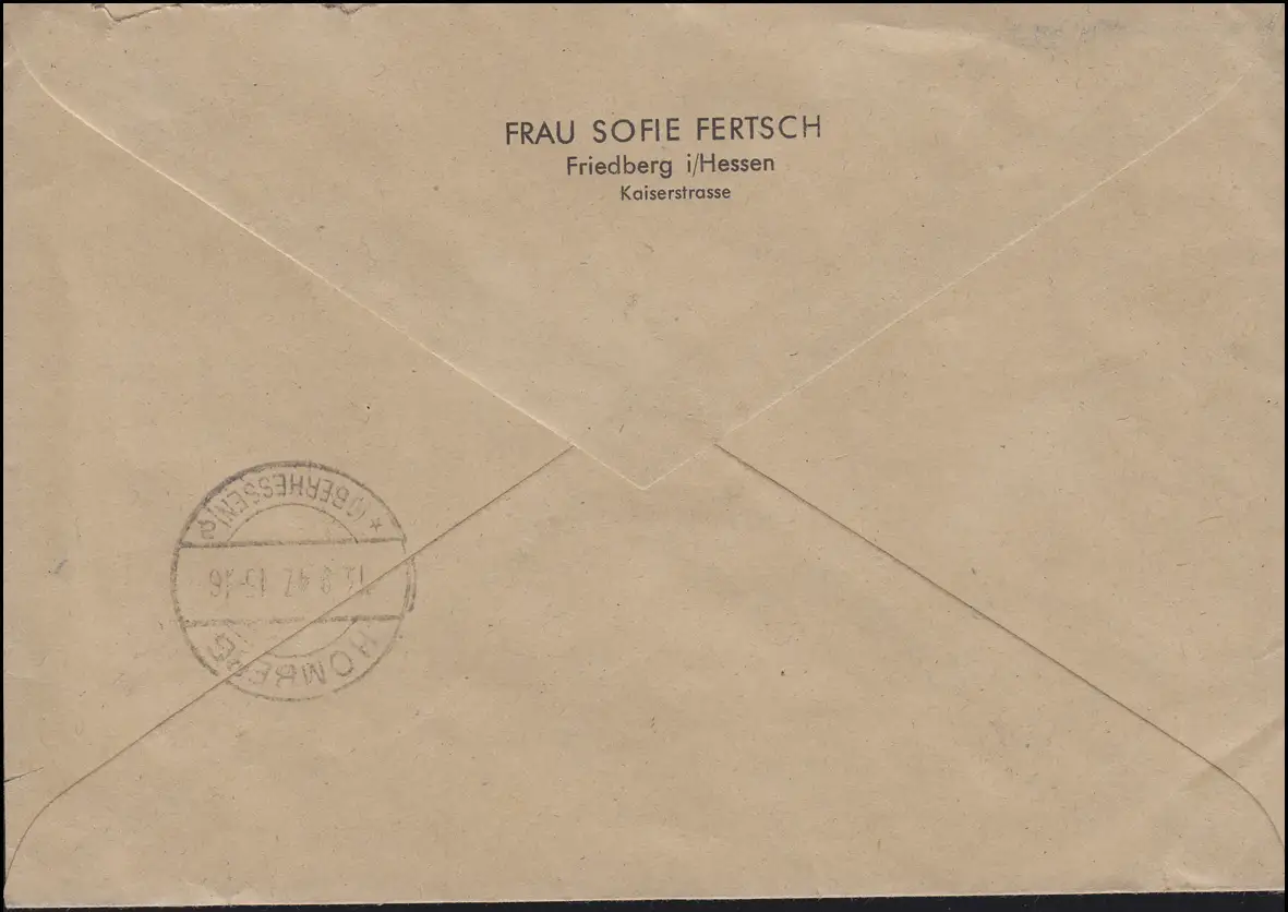avec cachet d'arrivée HOMBERG (OBERHESSEN) 13.9.47 Numéro de catalogue: 912+9229 Examen: original Référence produit: 000000000289770