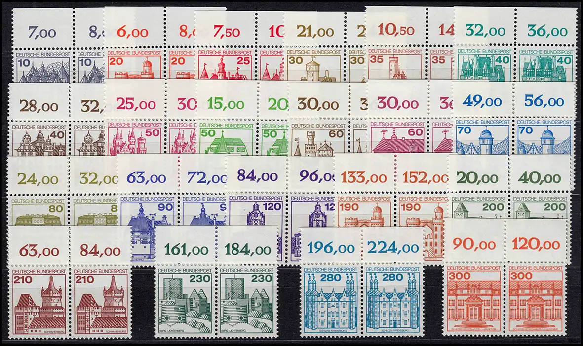 Burgen und Schlösser, 21 Werte aus Bogen komplett als waagerechte Paare vom Oberrand, postfrisch einwandfrei, ungefaltet