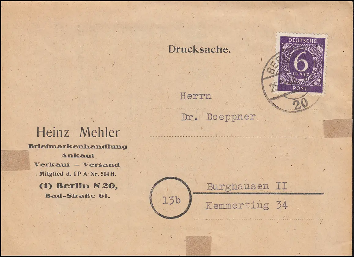 916 paragraphe 6 Pf. EF sur l'impression BERLIN 20 - 25.11.1946 vers Burghausen