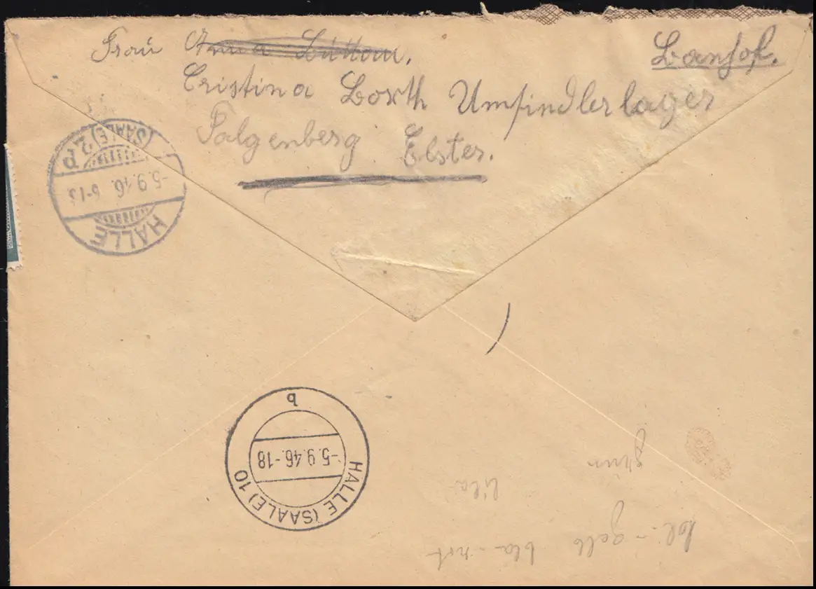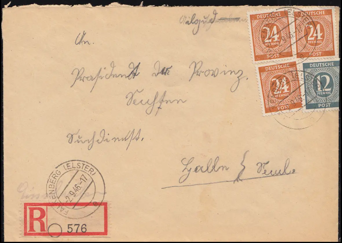 Tampon d'arrivée HALLE / SAALE 5.9.46, Franktur collée en partie sur le bord selon le graphique Numéro de catalogue: 920+925 Vérification: original Référence produit: milliard044256