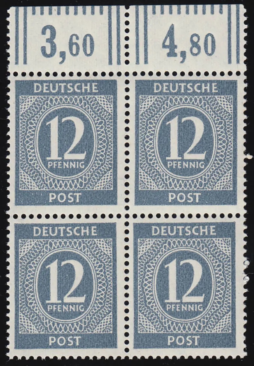920b W OR Ziffer 12 Pf Oberrand-Viererblock ** ungefaltet BPP-geprüft