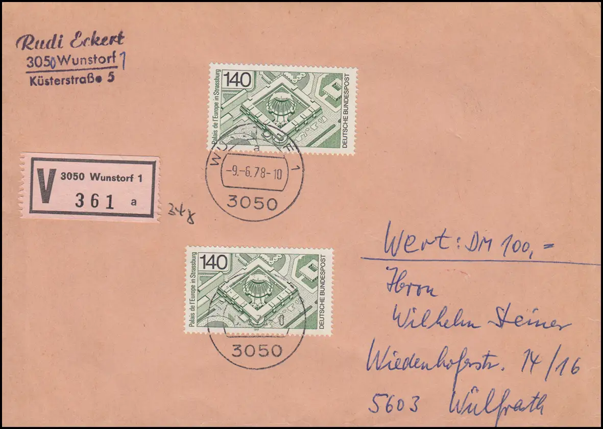 921 Parlement européen en tant que MeF lettre de valeur WUNSDORF 9.6.1978 après Wülfrath