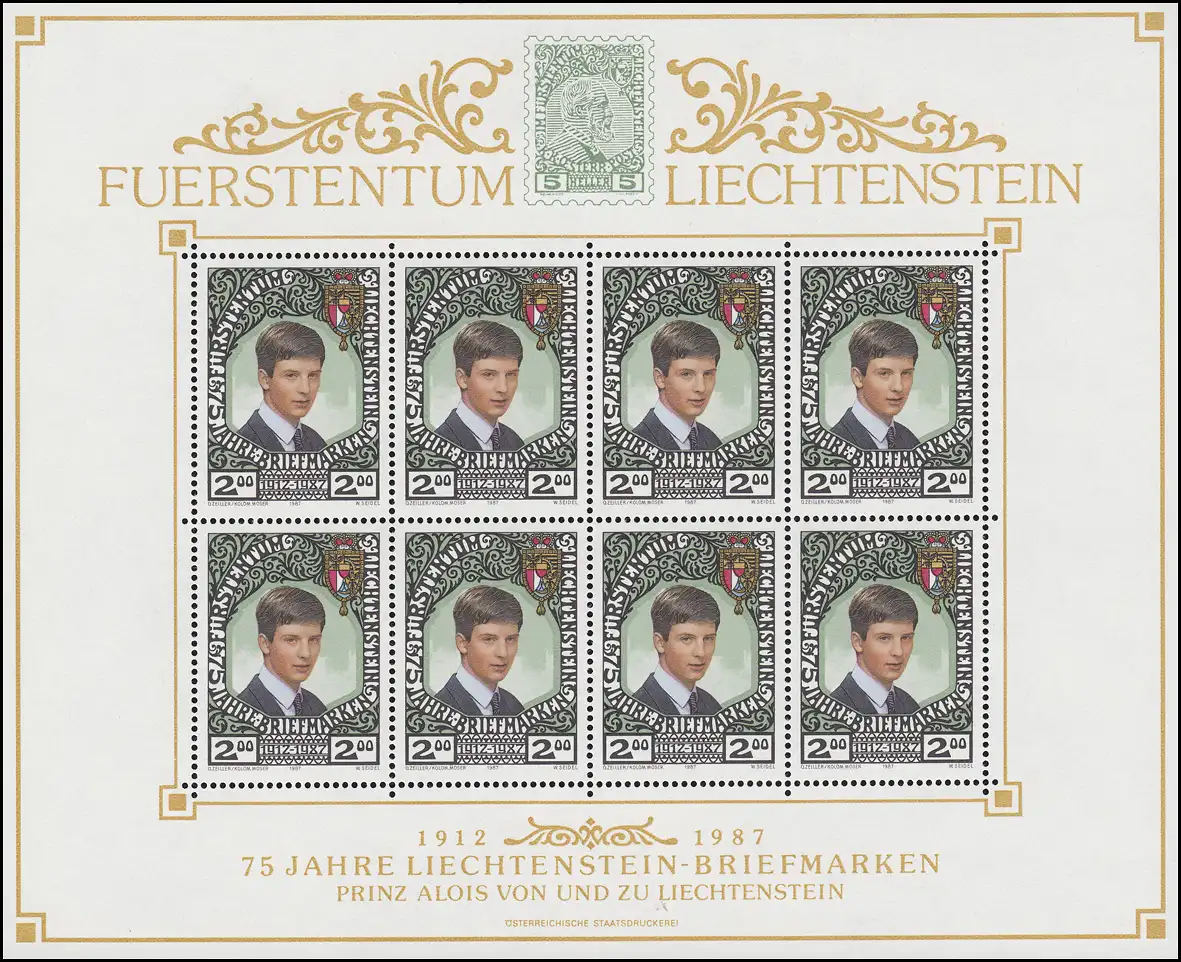 921 anniversaire 75 ans Timbres Liechtensteinais 1987, Petit feuille **