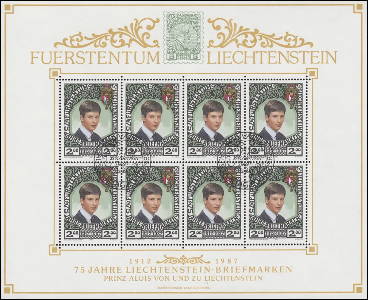 921 anniversaire 75 ans Timbres Liechtensteinais 1987, petit arc ESSt VADUZ