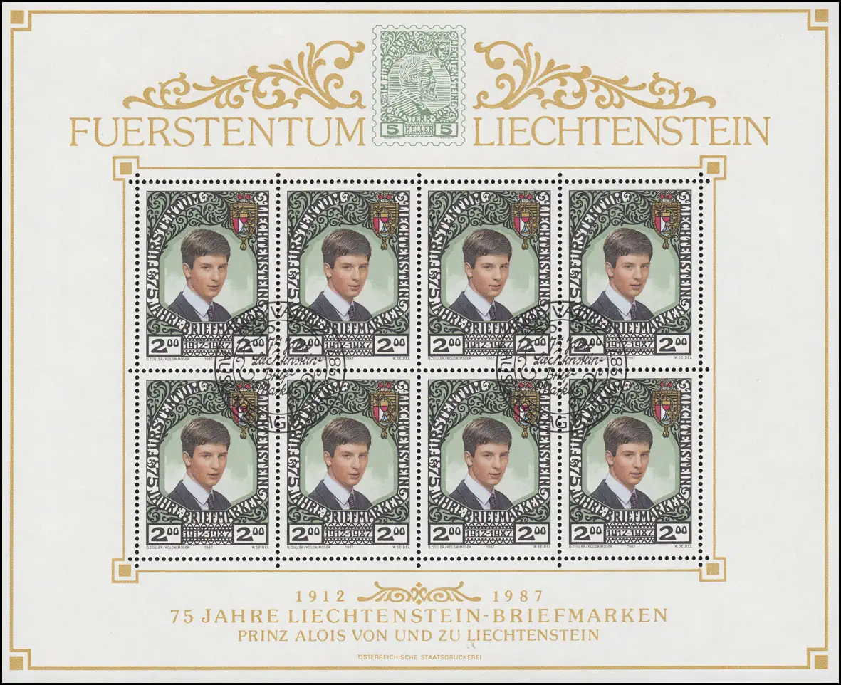 921 anniversaire 75 ans Timbres Liechtensteinais 1987, petit arc ESSt VADUZ