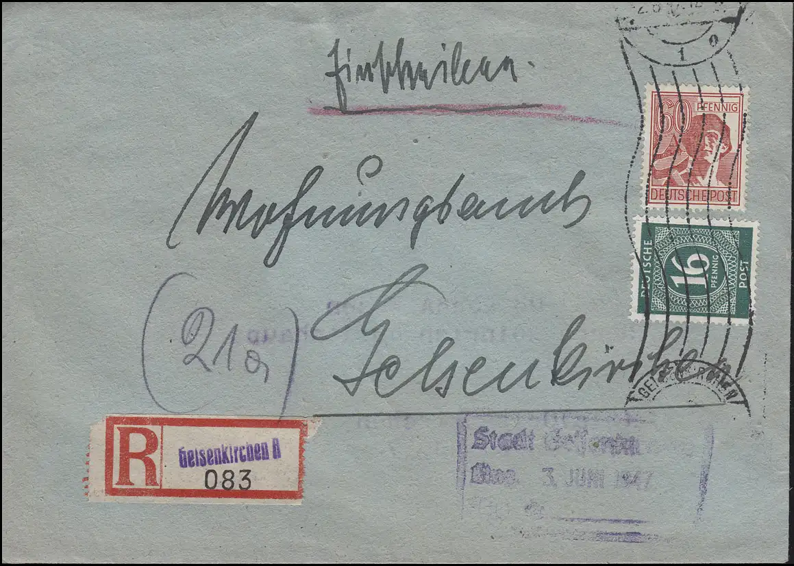 923+956 Conseil de contrôle I+II Lettre R locale Not-R-Zetten GELSENKIRCHEN 2.6.47
