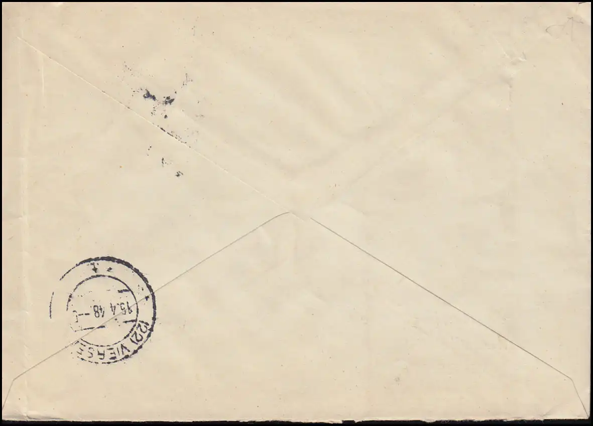 930ff Conseil de contrôle I chiffres - MiF sur lettre R de Not-R-Zettel KREFELD 5 - 14.4.1948