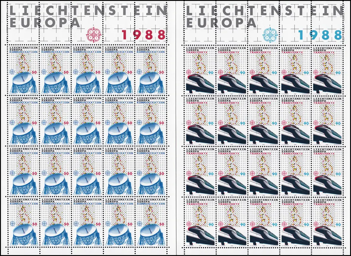937-938 Europe: moyens de transport et de communication, petit jeu de feuilles **