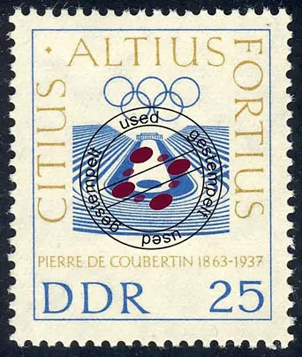 940 Baron Pierre de Coubertin 25 Pf O Tamponné