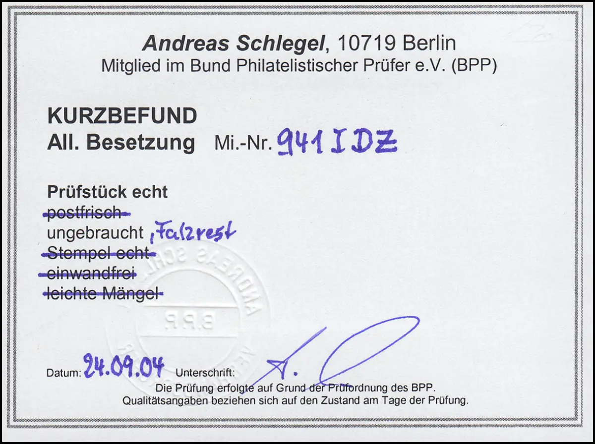 941I DZ Leipziger Messe mit WZ flache Stufen, Falzrest *, Befund Schlegel BPP