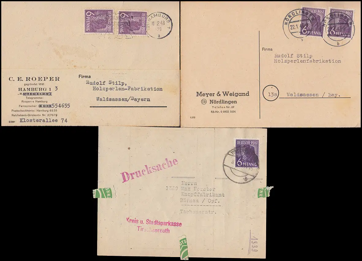 de la ville de Tirschenreuth (face d'une impression), Nördlingen (carte postale) et Hambourg (Carte postale), numéro de catalogue: 944 Examen: original Référence produit: 00000000035656>p>Remarque: Cet article n'est disponible qu'en une seule fois. Vous recevrez exactement l'article représenté.