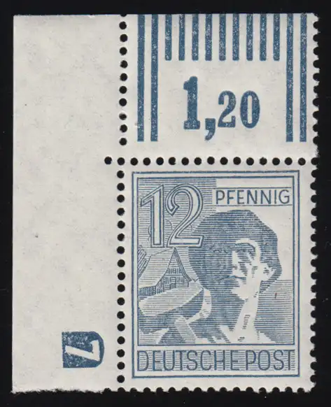 947DZ marque libre 12 pcs coin en haut à gauche avec DZ 7 négatif, post-frais ** non plié