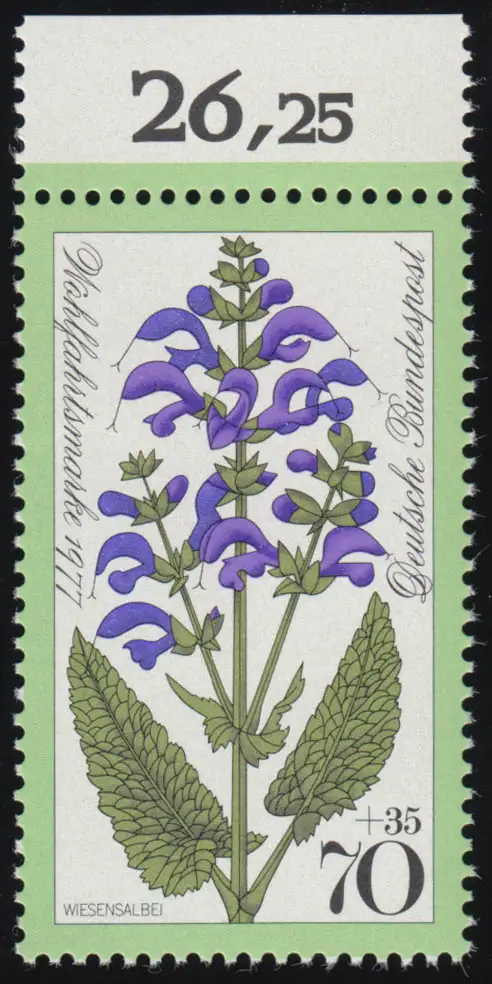 952 Fleurs prés 70+35 Pf Pägensalbei ** Oberrand