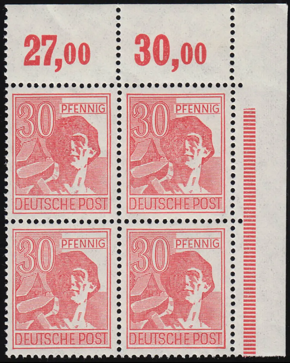 953 POR Kontrollrat II 30 Pf - Plattendruck Eck-Vbl o.r. durchgezähnt dgz, **