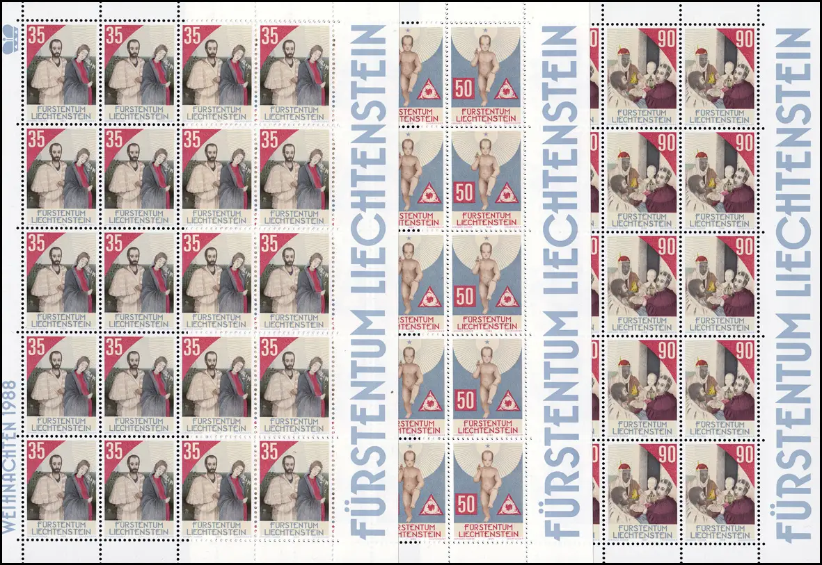 954-956 Noël, 4 valeurs, petit jeu de feuilles **