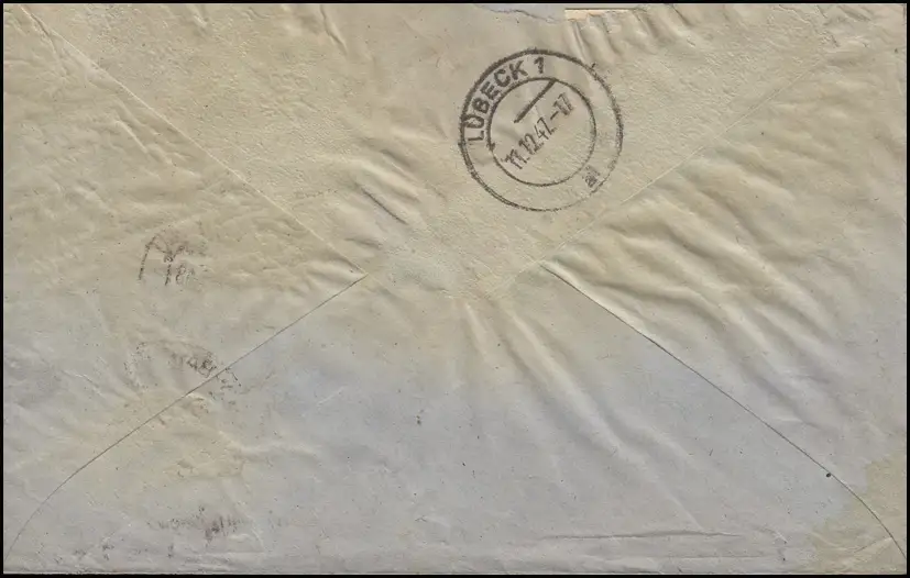 959 pigeon avec 945+929 Not-R-Zettel Cologne-Bayenthal 10.12.47 vers Lubeck 11.12.49