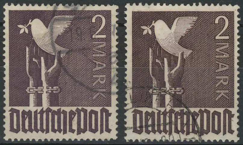 960 Freiemarke Friedenpoussiere 2 Mark: deux variantes de couleurs, set tamponné