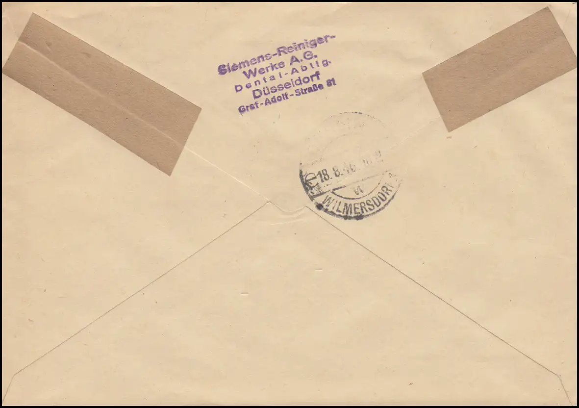 Lettre postale à la Harvard Dental-Gesellschaft à Berlin, timbre d'arrivée BERLIN-WILMERSDORF 18.8.46 Numéro de catalogue: 963 Examen: original Référence produit: 0000000003589>Remarque: Cet article n'est disponible qu'une seule fois. Vous recevrez exactement l'article représenté.