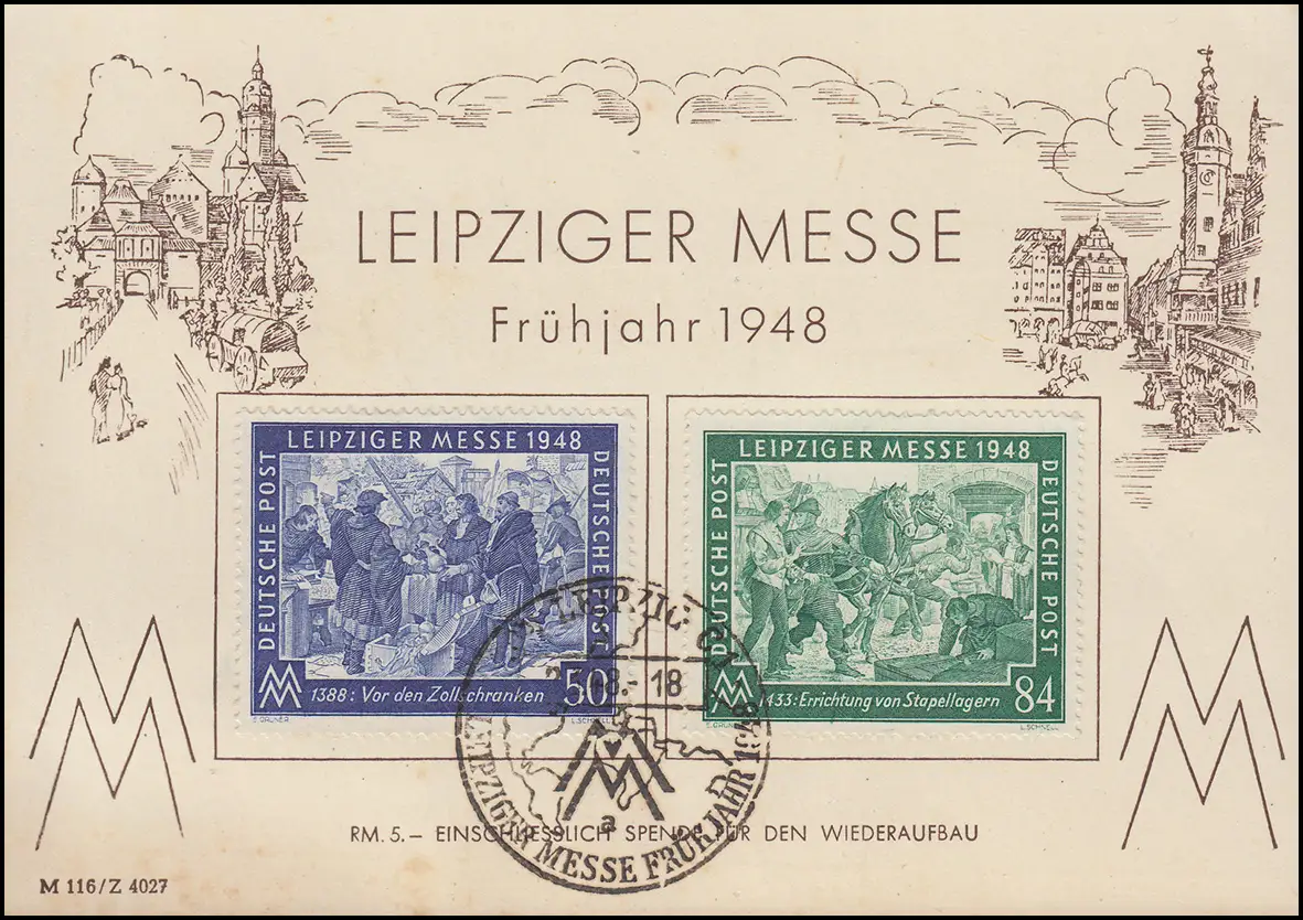 967-968 Messe Leipzig 1948 sur la carte postale spéciale de FDC ESSt Leipzig d 2.3.1948