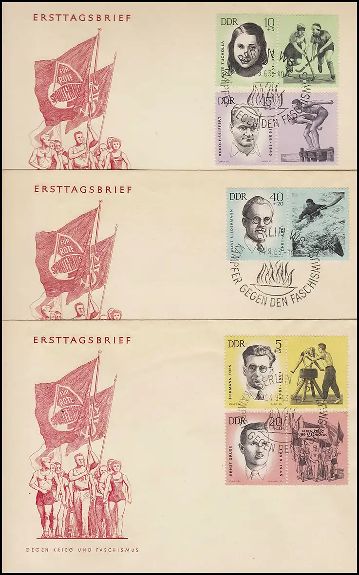 983-987 Assassinés par des athlètes antifascistes en 1963 - phrase sur FDC 1, 2 et 3