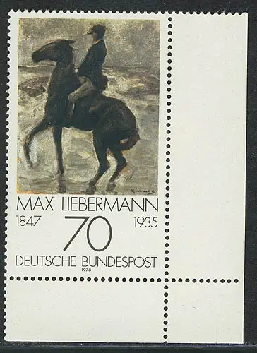 987 Impressionnisme 70 Pf Liebermann ** Coin et r.