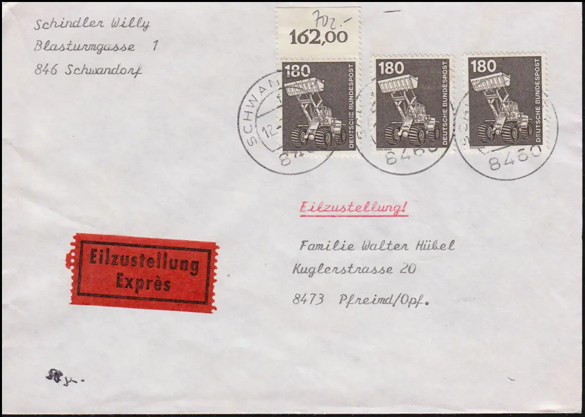 993 Chargeur de roue Iut 180 Pf comme MeF lettre d'urgence lourde SCHWANDORF 12.7.1985