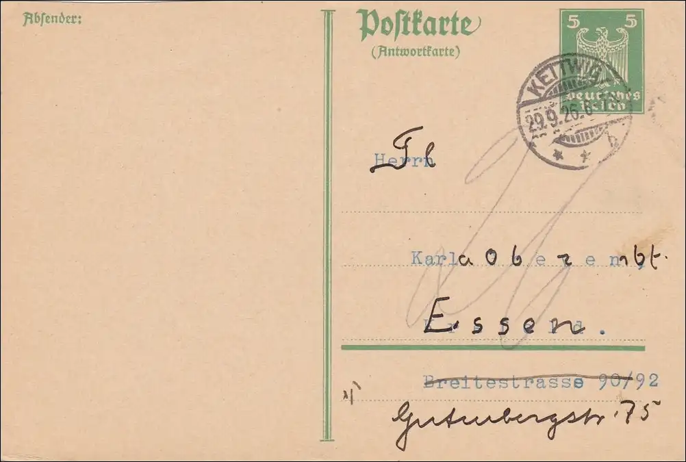 A propos: P163 IA de Kettwig à Essen 1926 - Réponse