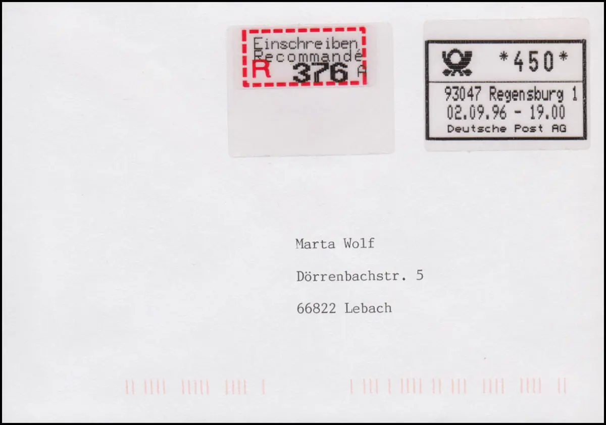 ABAS Le premier système automatique d'acceptation de courriers REGENSBURG comme R-FDC 2.9.1996