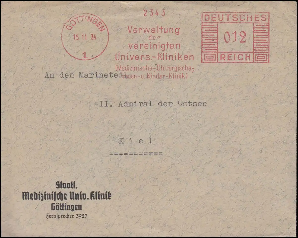 AFS Administration des cliniques universitaires unies Göttingen 15.11.34 sur lettre