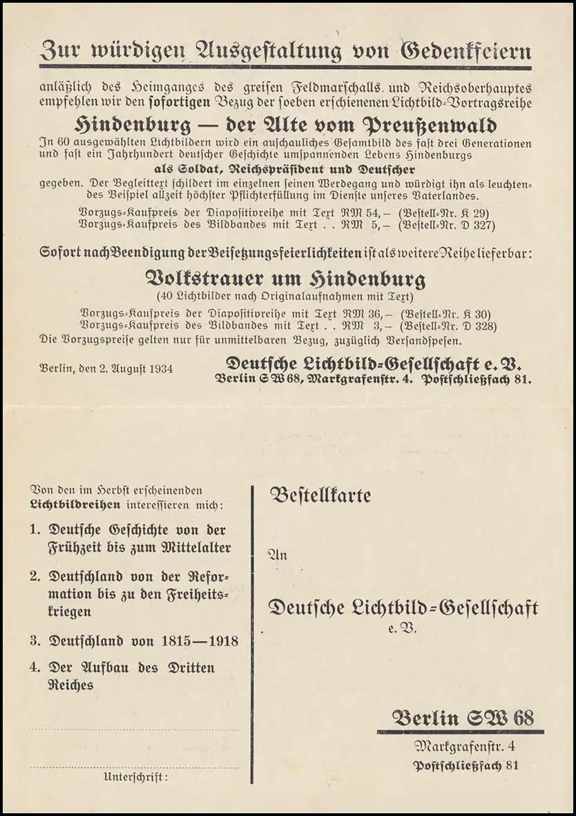 Carte publicitaire double avec réponse de la société Deutsche Foto-Gesellschaft à Berlin pour des appareils de projection pour la projection de photographies, bandes-photo, épi et films à l'école Marine à Kiel-Wik Examen: original Référence produit: 00000000034766>Remarque: Cet article n'est disponible qu'une seule fois. Vous recevrez exactement l 'article illustré.