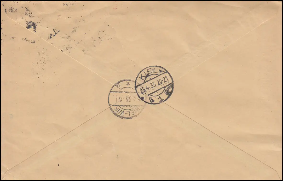 Lettre postale à l'amiral II de la mer Baltique, par l 'intermédiaire de KIEL 1 - 25.4.33, timbre d'arrivée Kiel-WIK 25.4.33 Vérification: original Référence produit: 000000000222226>Remarque: Cet article n'est disponible qu'une seule fois. Vous recevrez exactement l l\'article représenté.
