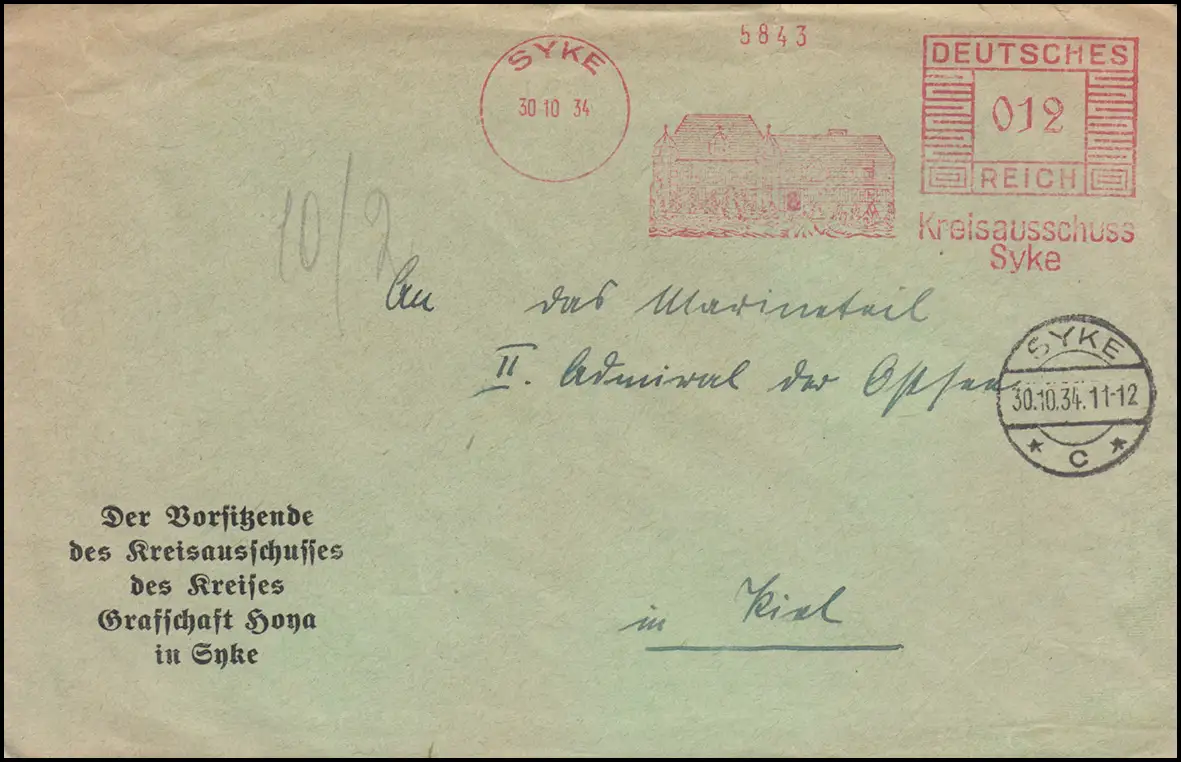 AFS Comité de district Syke 30.10.34 La Cour des Comptes, lettre avec cachet du jour SYKE 30.10