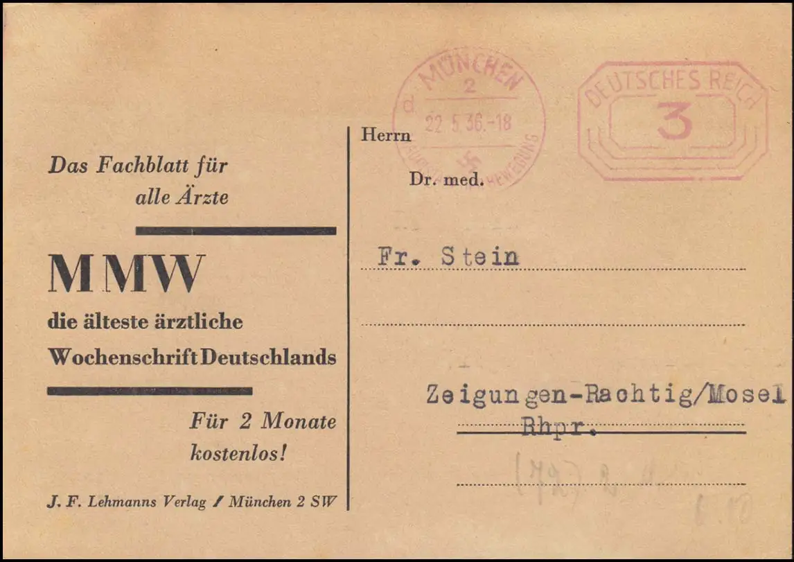 AFS Munich 22.5.36 sur papier feuille technique pour médecins MMW n. Montrer-Rachtig