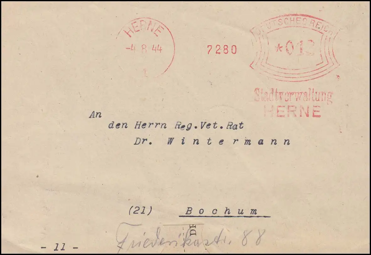Administration municipale AFS Herne 4.8.44 Protection sanitaire des bovins, lettre à Bochum