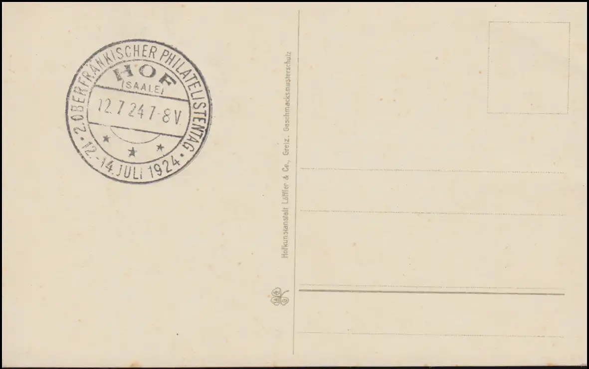 AK 2ème jour philatélistes français supérieur Cour 1924 SSt Hof/SAALE 12.7.24