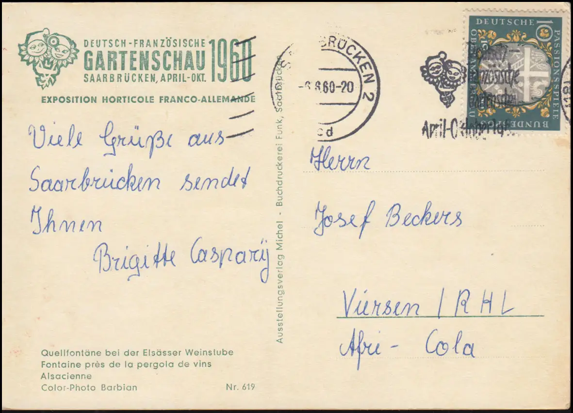 AK 619 Français-Français Gartenschau für Angüß-O SARBRÜNG 6.6.1960