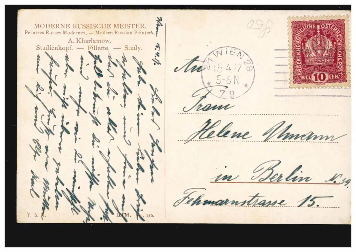 AK A. Kharlamov: Portrait de fille - tête d'étude, VIENNE 15.4.1917