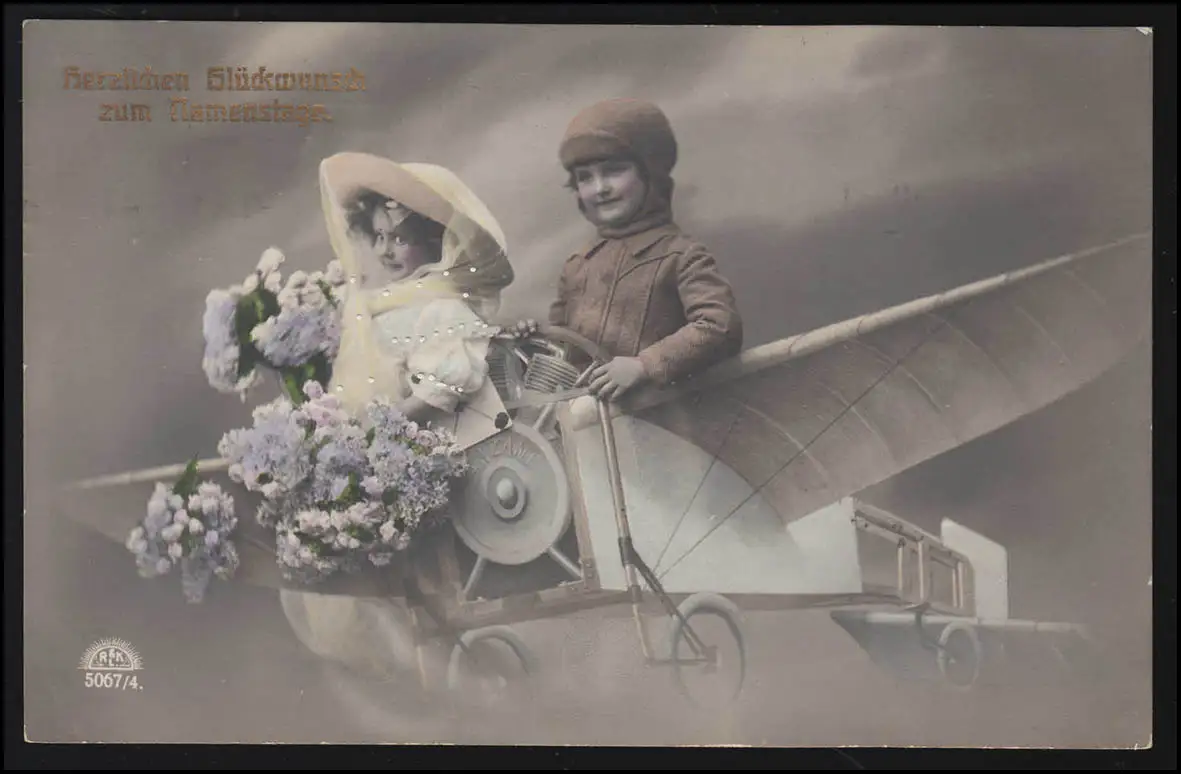 AK Aéronautique Enfants Aéroport Félicitations Fleurs Nom, MUNICH 8.3.1913