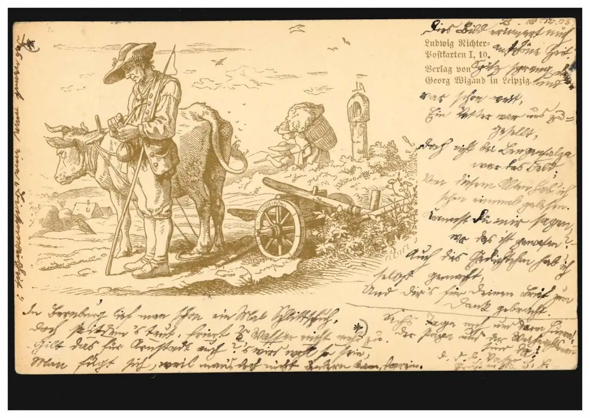 AK Agriculture: Carte postale Ludwig-Richter - Charrues de bœufs, 1903